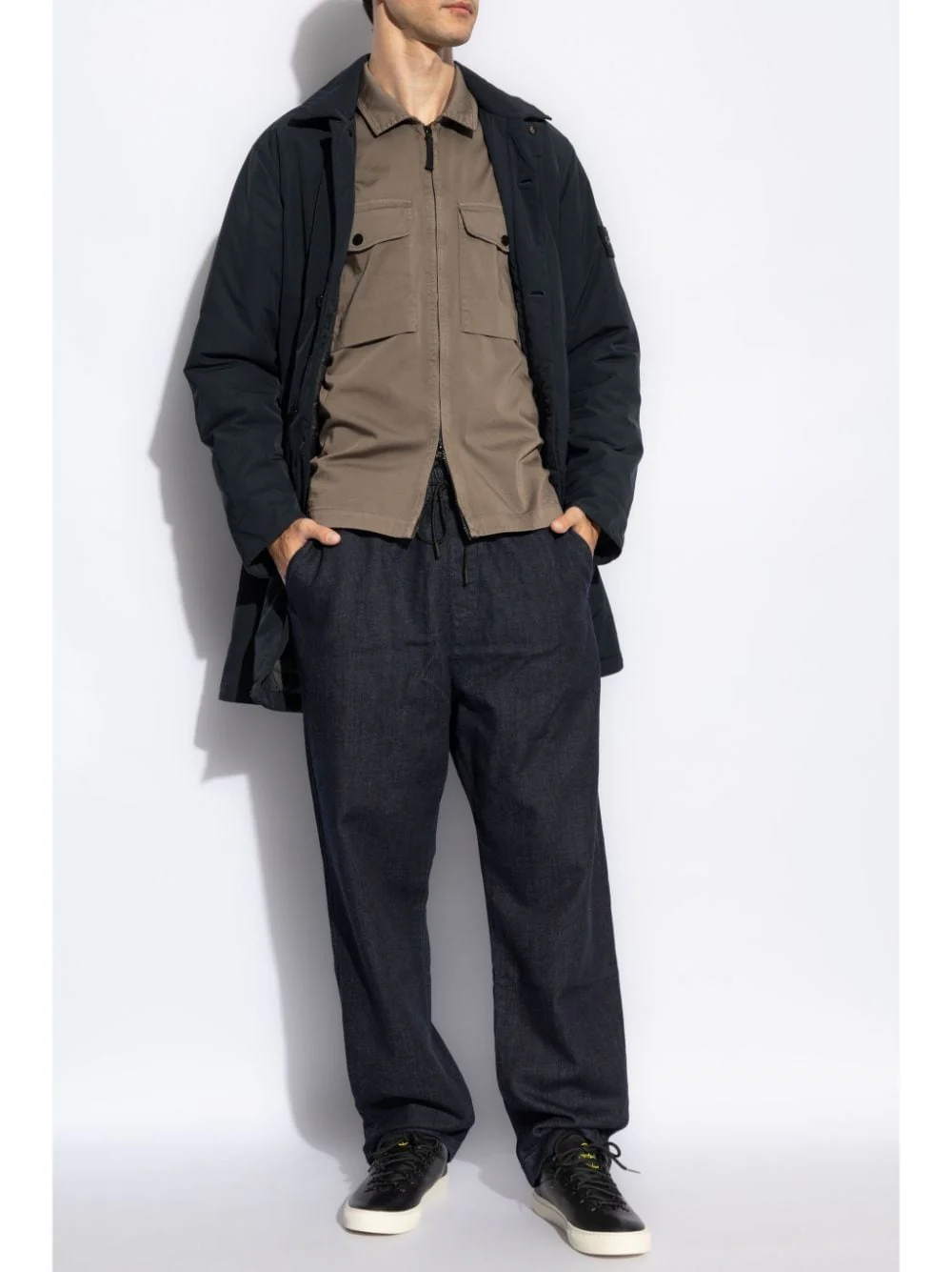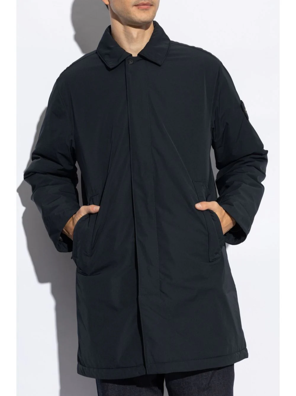 Stone Island : manteau imperméable bleu marine