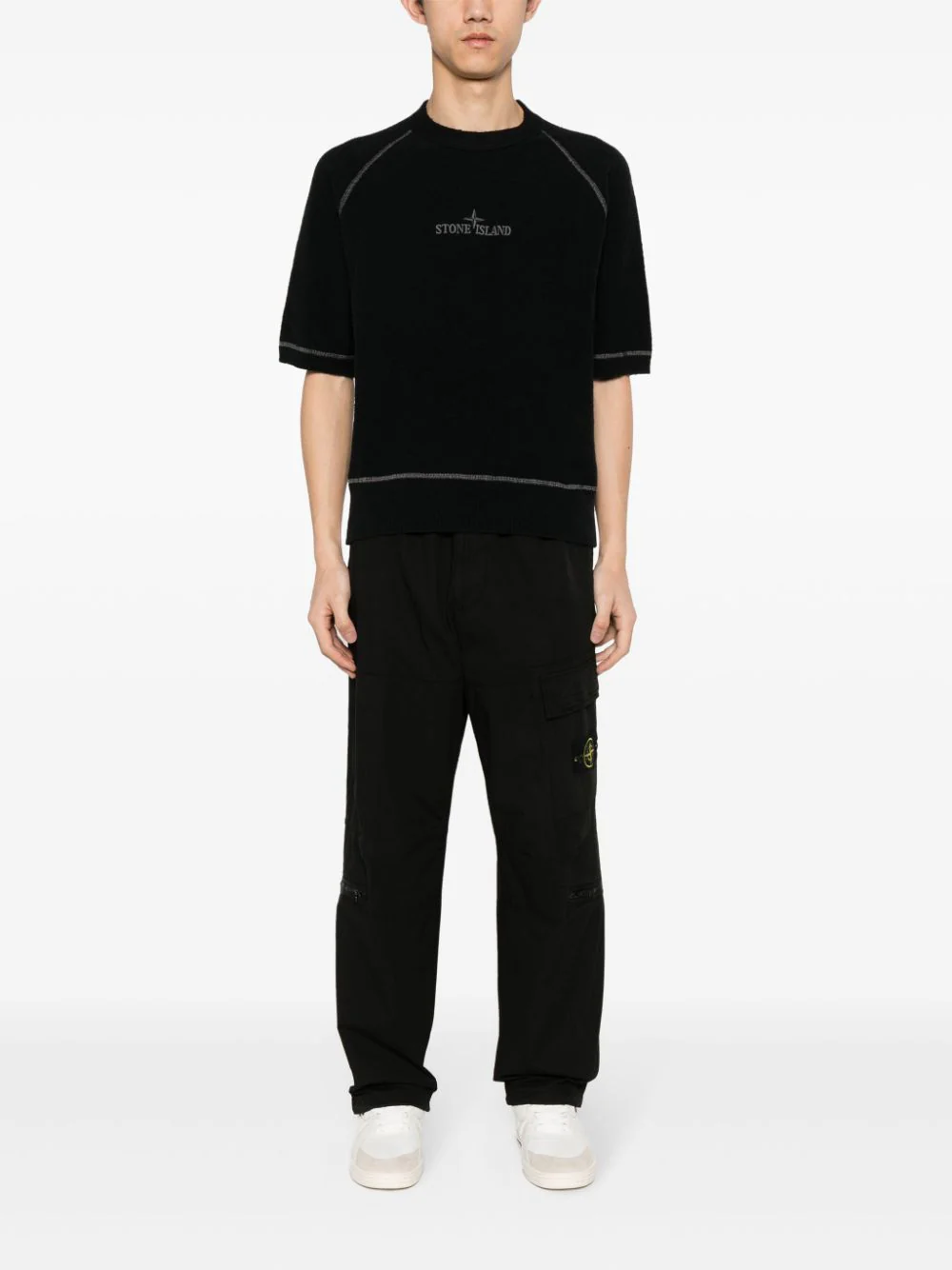 Stone Island – Pantalon cargo black à motif Compass signature