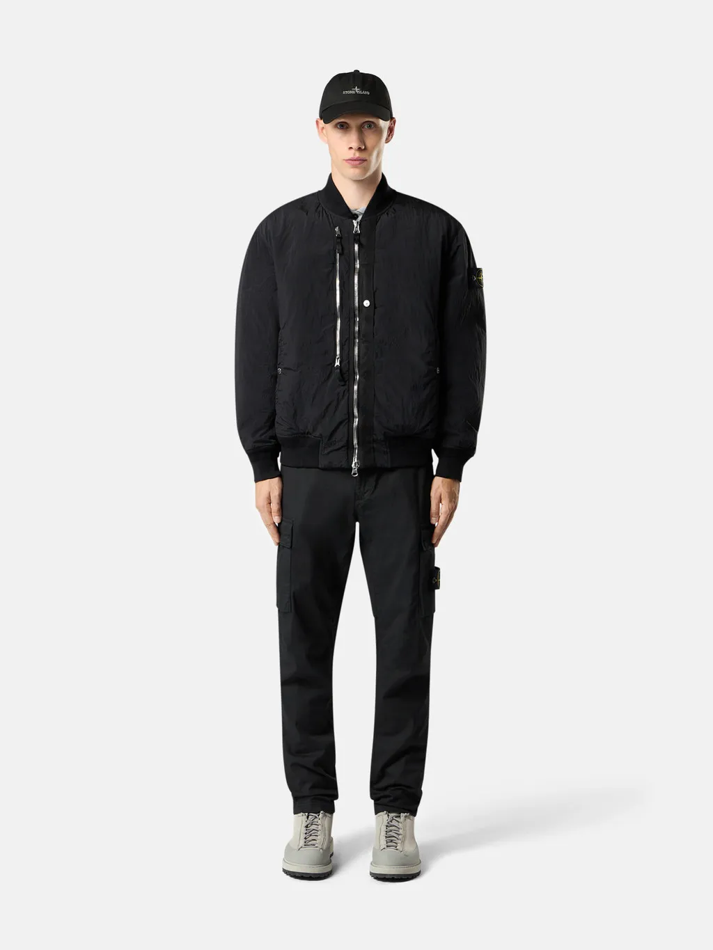 STONE ISLAND – Pantalon cargo coupe fuselée regular à poches zippées noir