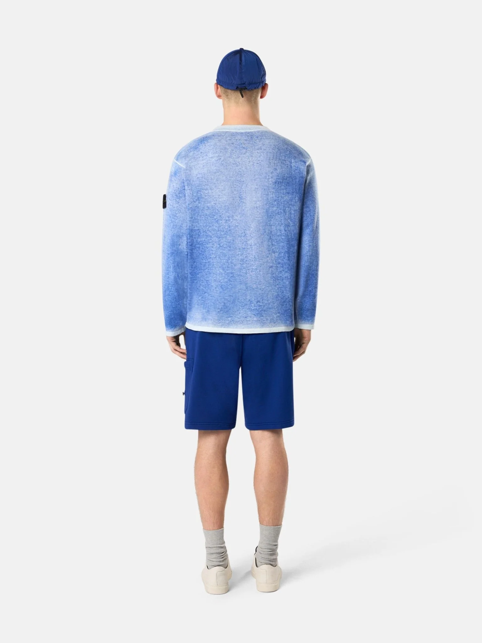 Encolure côtelée. Badge Stone Island sur la manche gauche. Oversize.ID LOTHAIRE : k1s155100030s00z2 v0028 blue marine