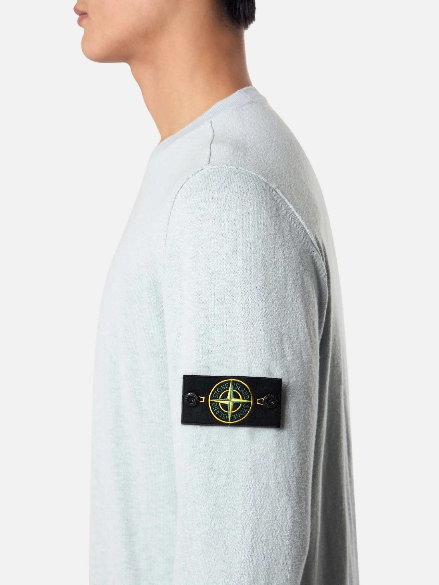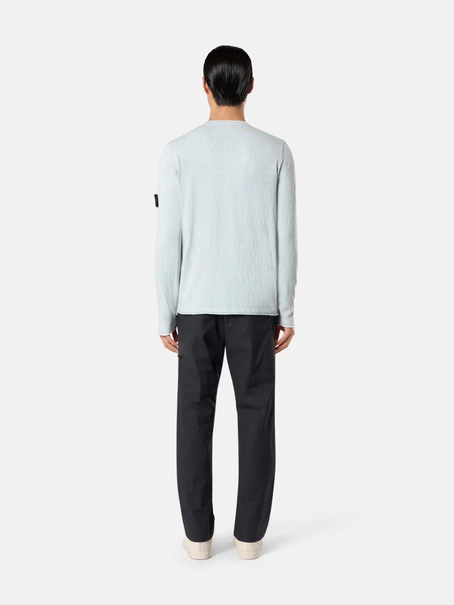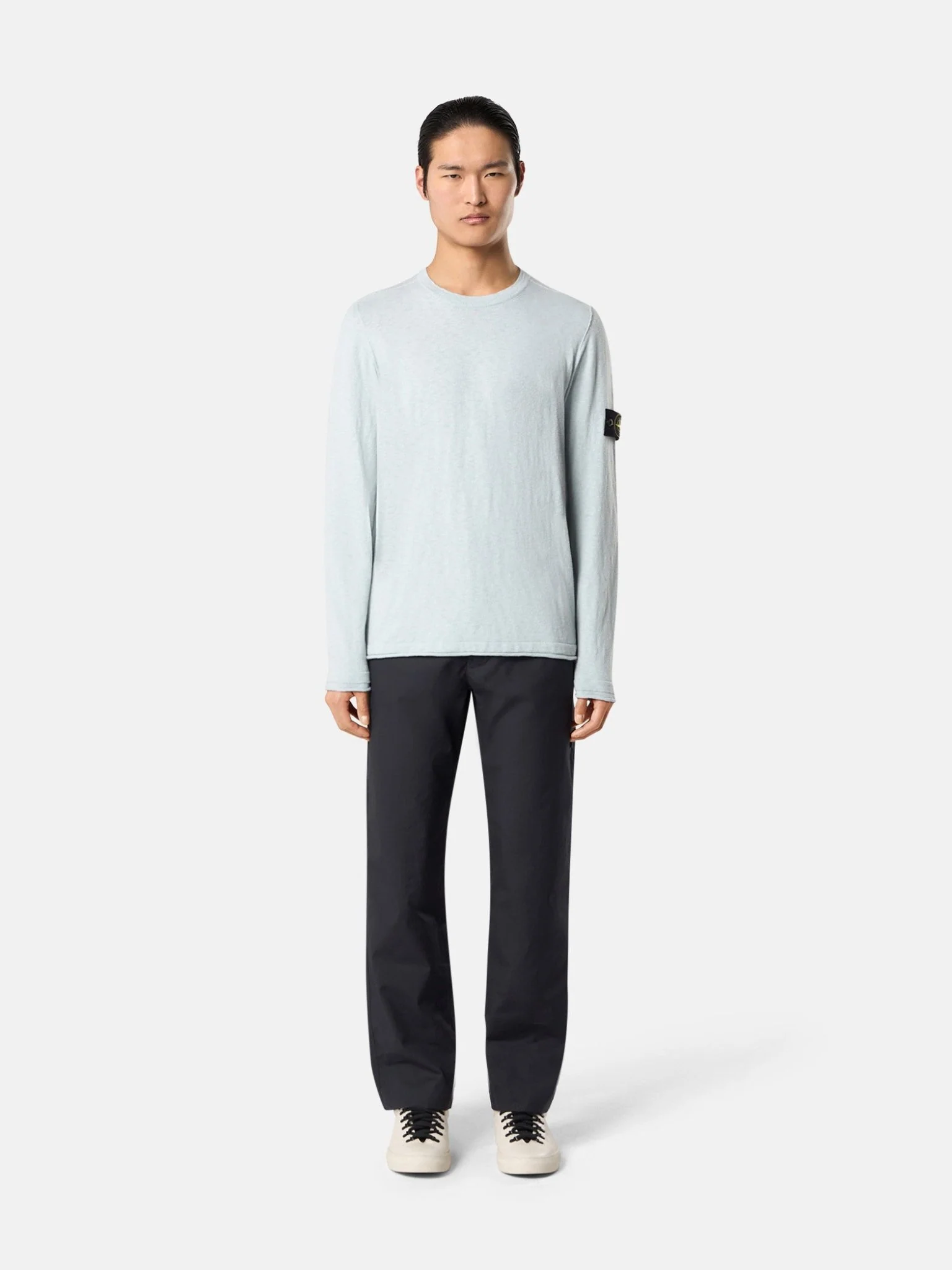 Encolure plate. Petit rouleau aux emmanchures. Badge Stone Island sur la manche gauche. Poignets et bord inférieur plats avec finition en petit rouleau. Regular.