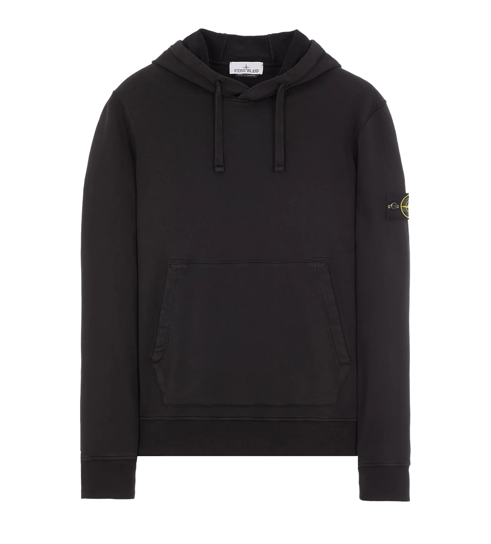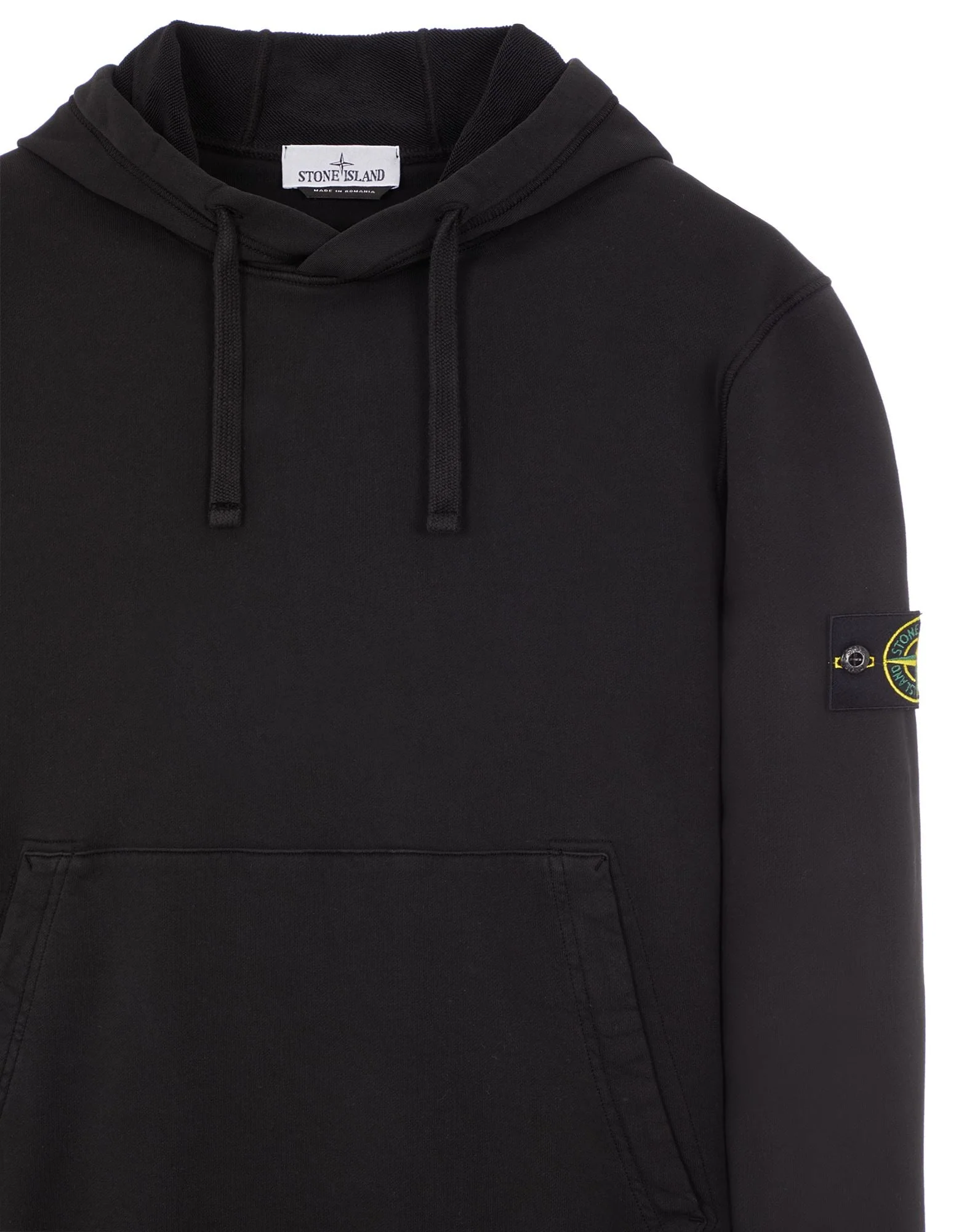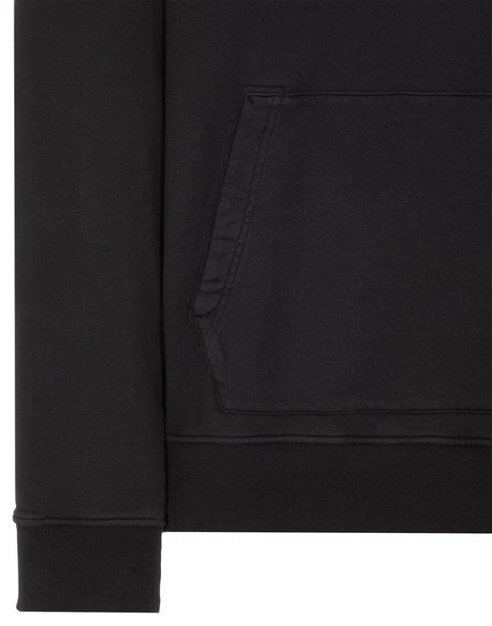 Cordon de serrage sur le bord de la capuche. Poche kangourou avec ouvertures obliques doublées de ruban de coton. Surpiqûres. Badge Stone Island sur la manche gauche. Poignets et ourlet finement côtelés.