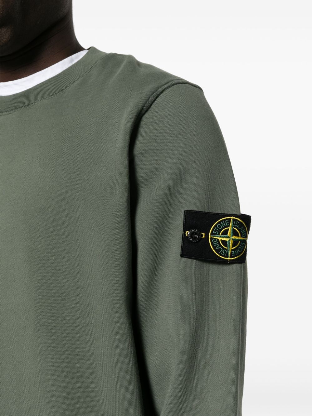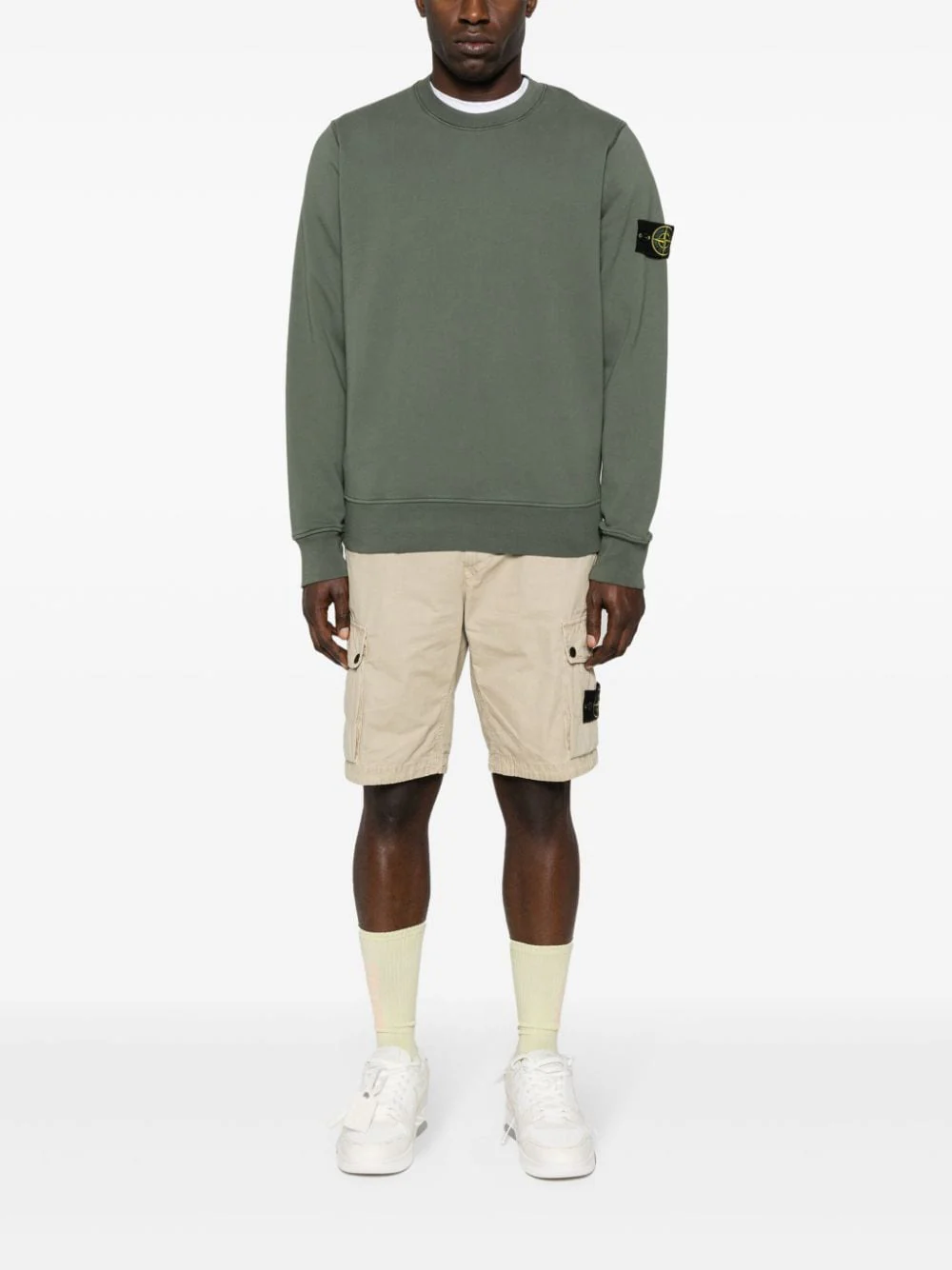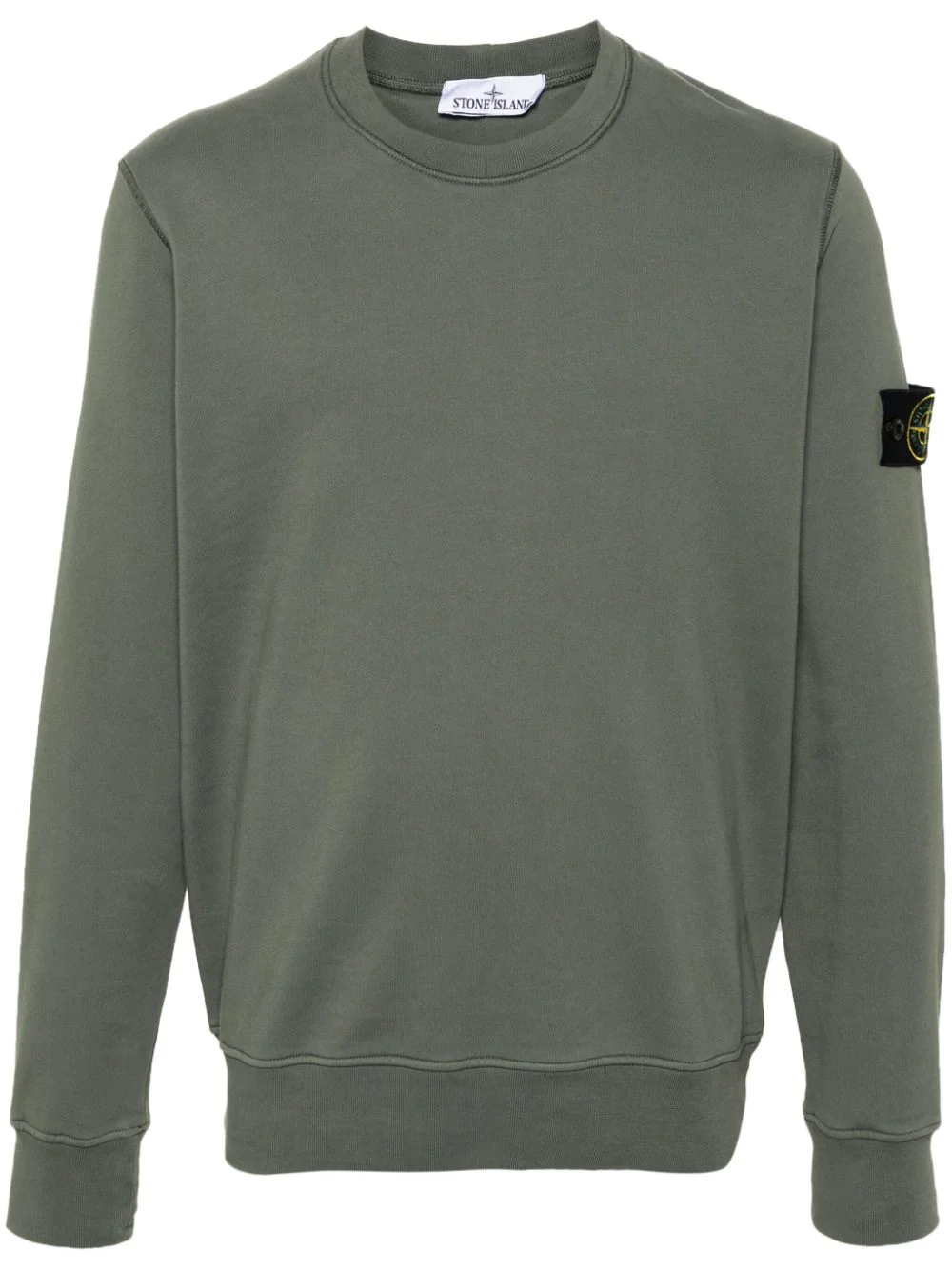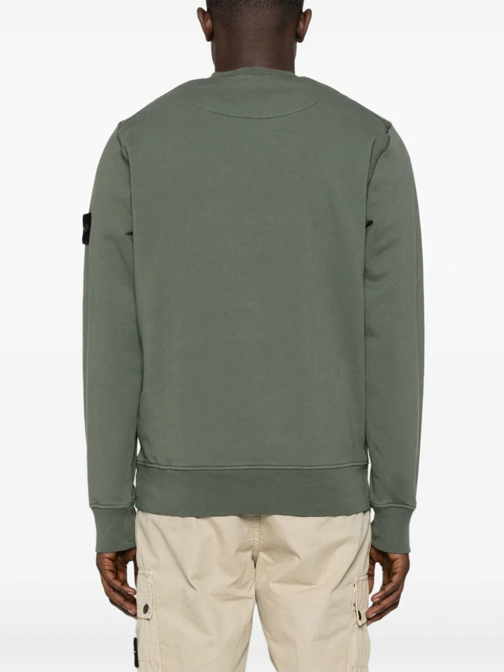 Sweat-shirt ras-du-cou en coton. Modèle teint en pièce. Coupe classique. Col finement côtelé. Badge Stone Island sur la manche gauche. Coutures overlock. À l’arrière, sous le col, un empiècement avec doublure intérieure. Poignets et bas finement côtelés. 100% Coton Laver délicatement à 40°C max ID Marque : 801563051 V0059
