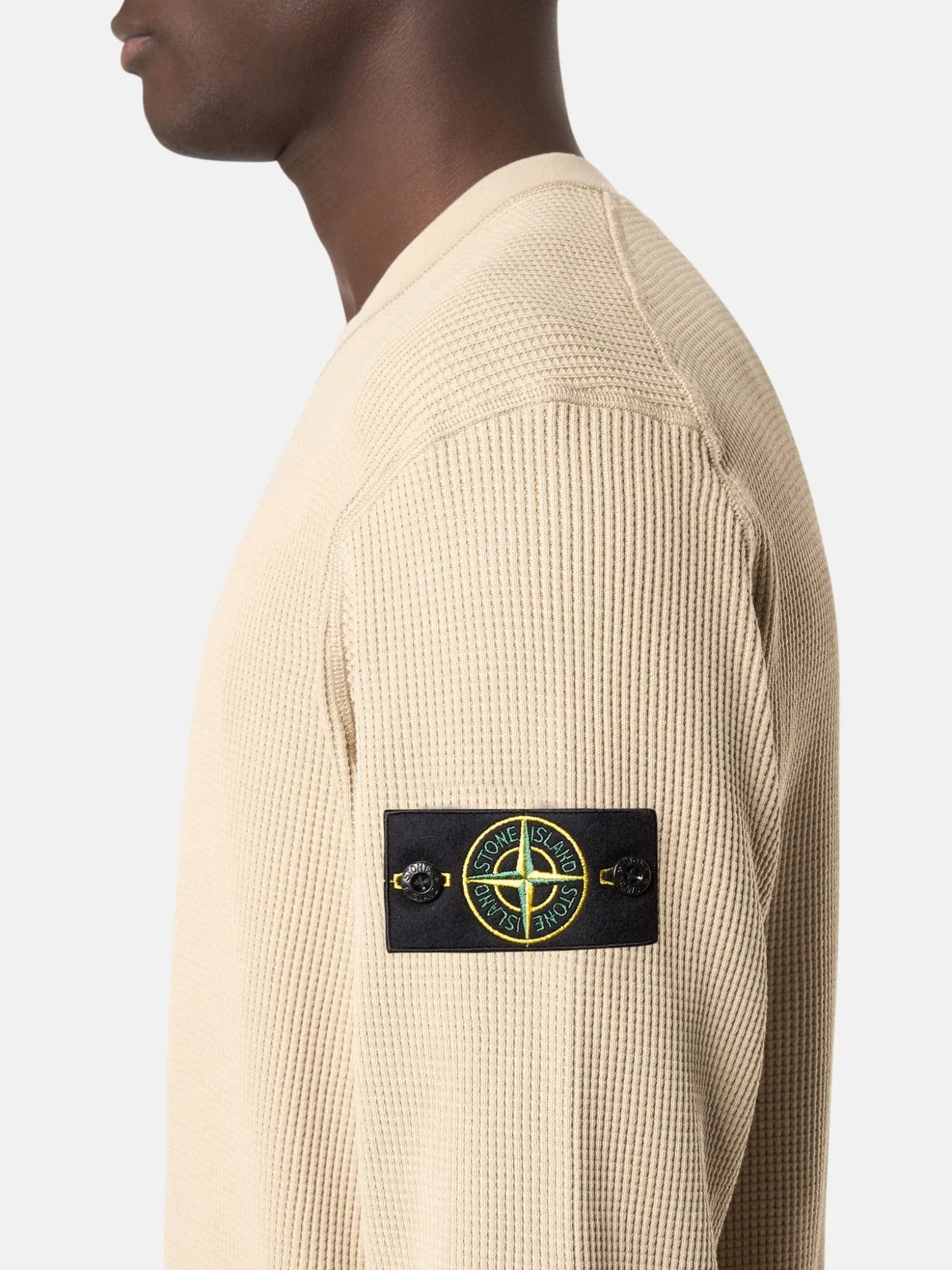 STONE ISLAND – Sweat-shirt ras-du-cou à détails côtelés Desert