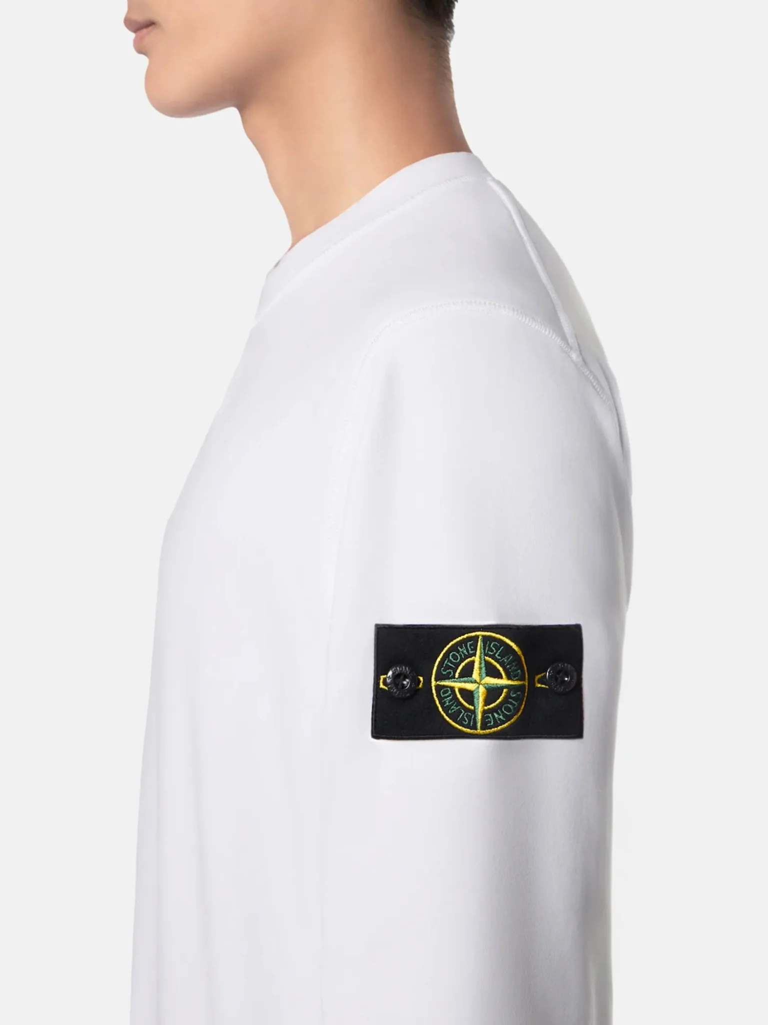 STONE ISLAND – Sweat-shirt ras-du-cou coupe regular à poignets élastiqués Blanc