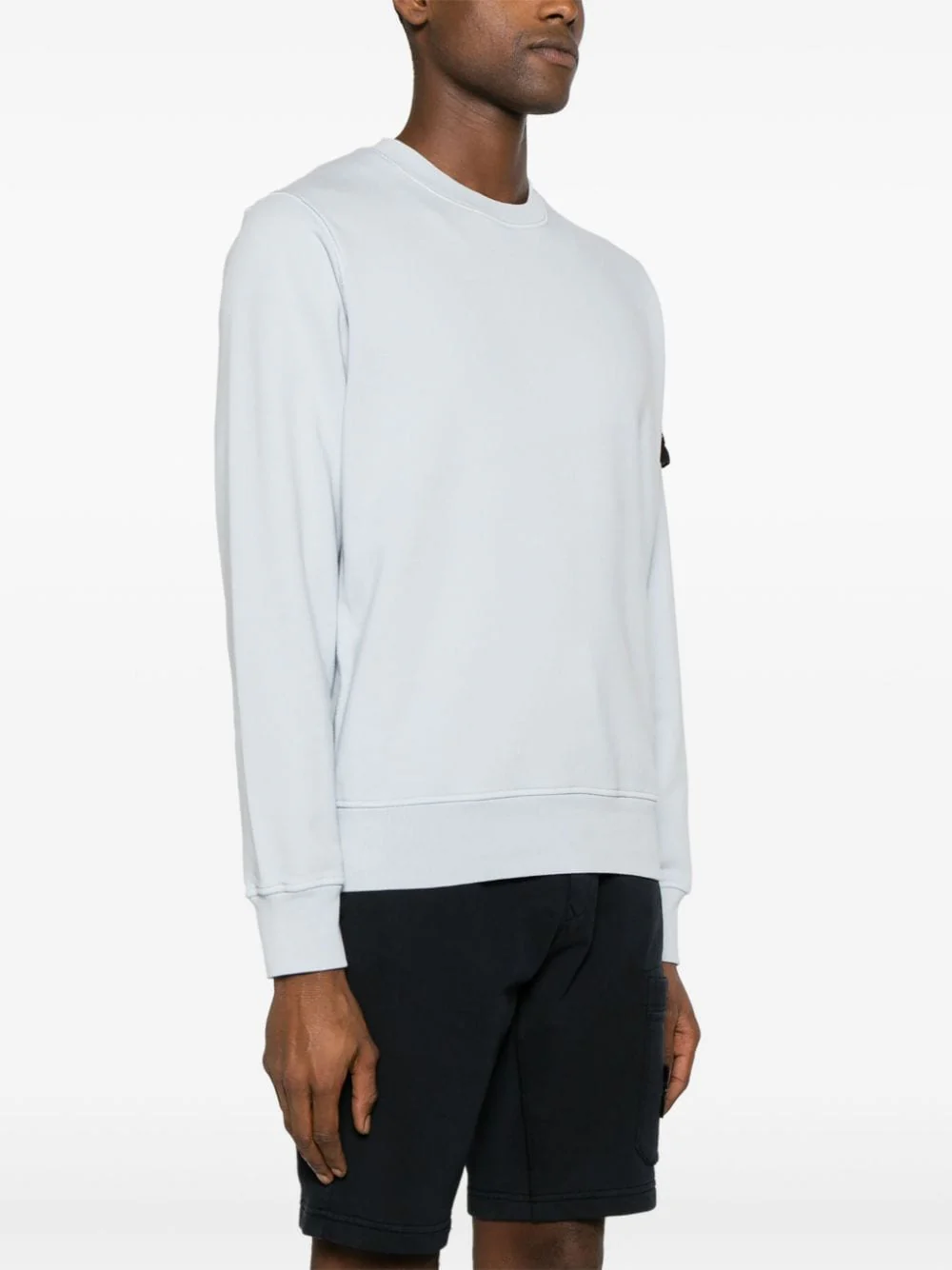 Sweat-shirt ras-du-cou en coton. Modèle teint en pièce. Coupe classique. Col finement côtelé. Badge Stone Island sur la manche gauche. Coutures overlock. À l’arrière, sous le col, un empiècement avec doublure intérieure. Poignets et bas finement côtelés. 100% Coton Laver délicatement à 40°C max ID Marque : 801563051 V0041