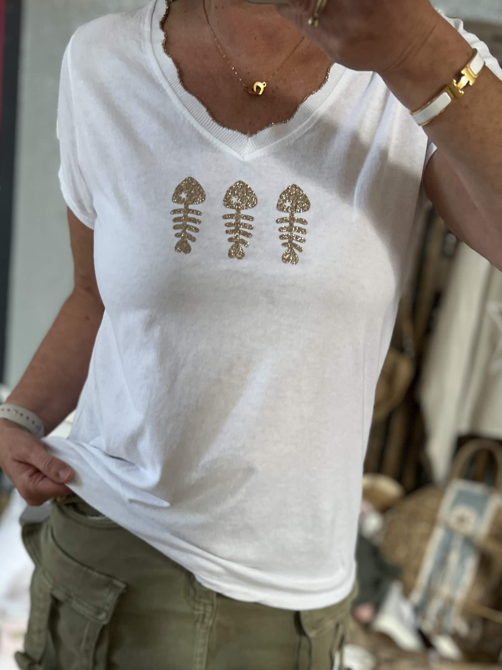 T-shirt cds blanc doré