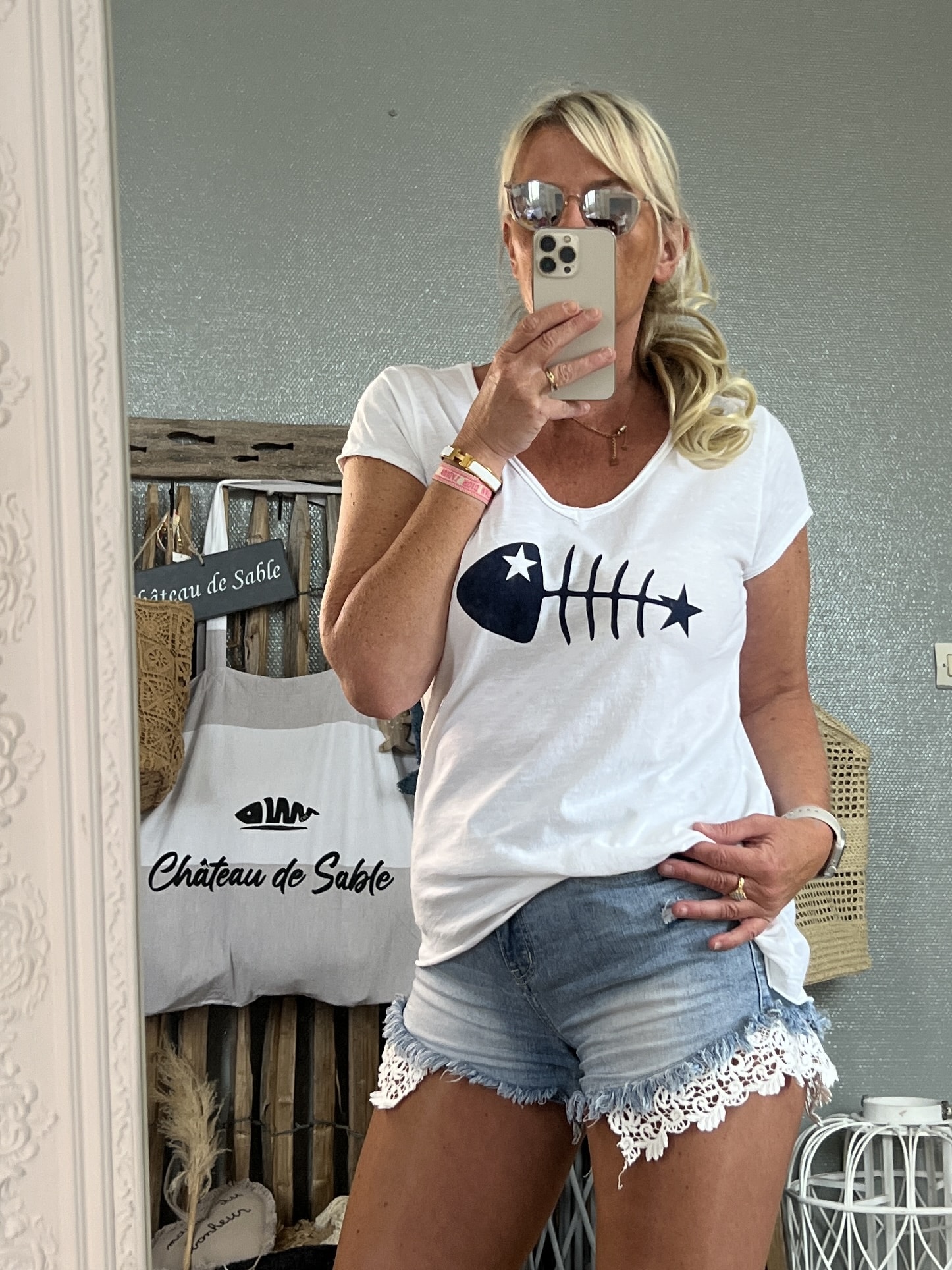 T-shirt fish blanc marine