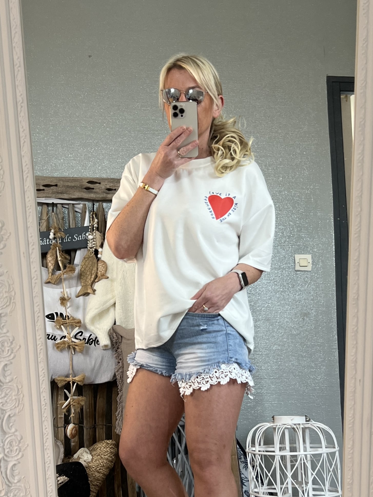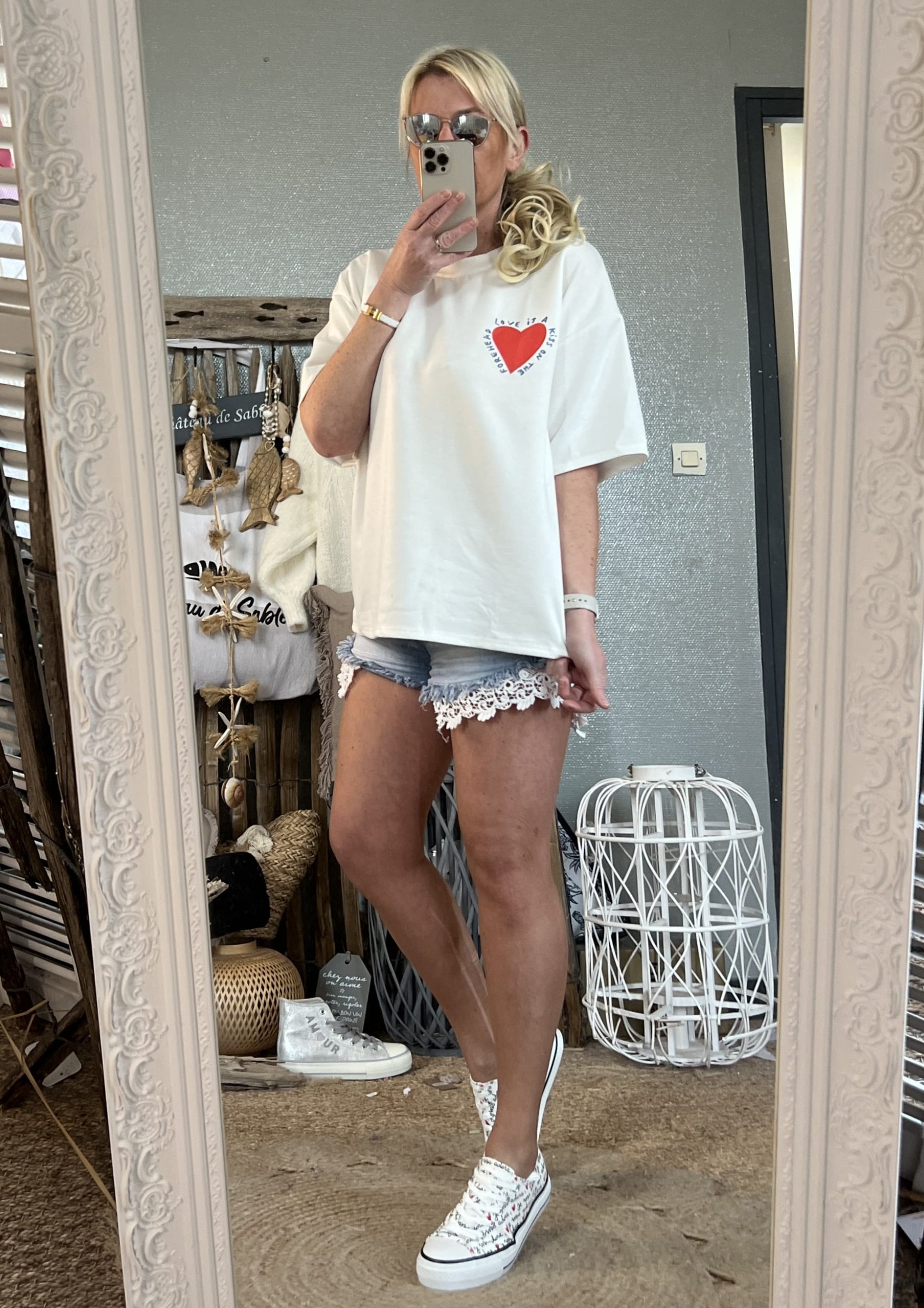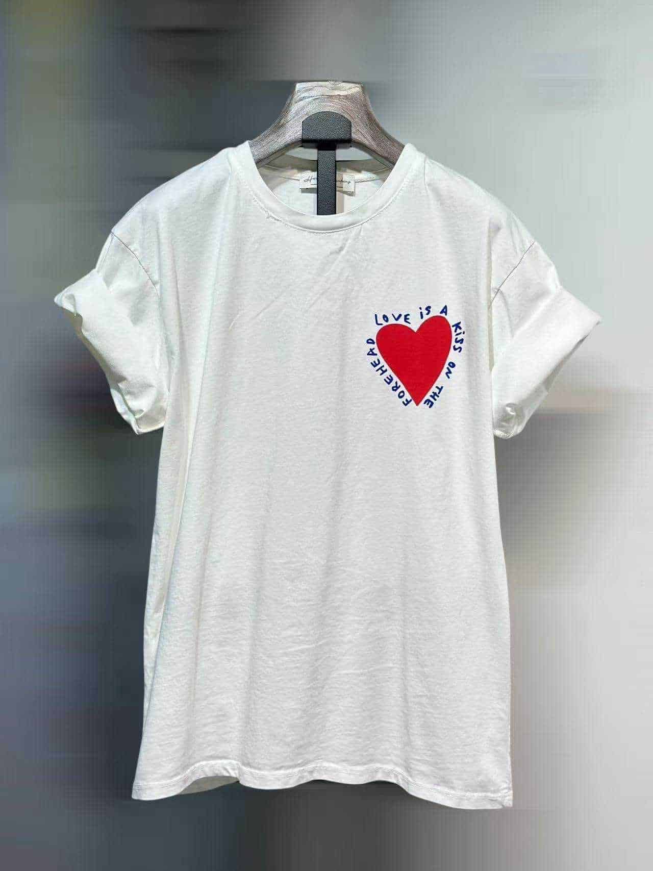 Ce tee-shirt en coton doux, coupe classique, avec un grand cÅ“ur rouge éclatant pour une touche romantique. ♡ Taille unique: du 34 au 42.Â