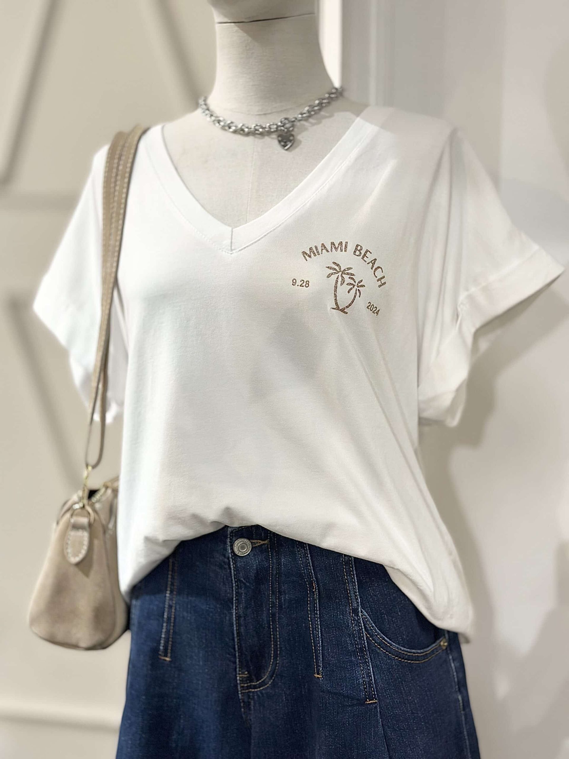T-shirt Palm blanc doré