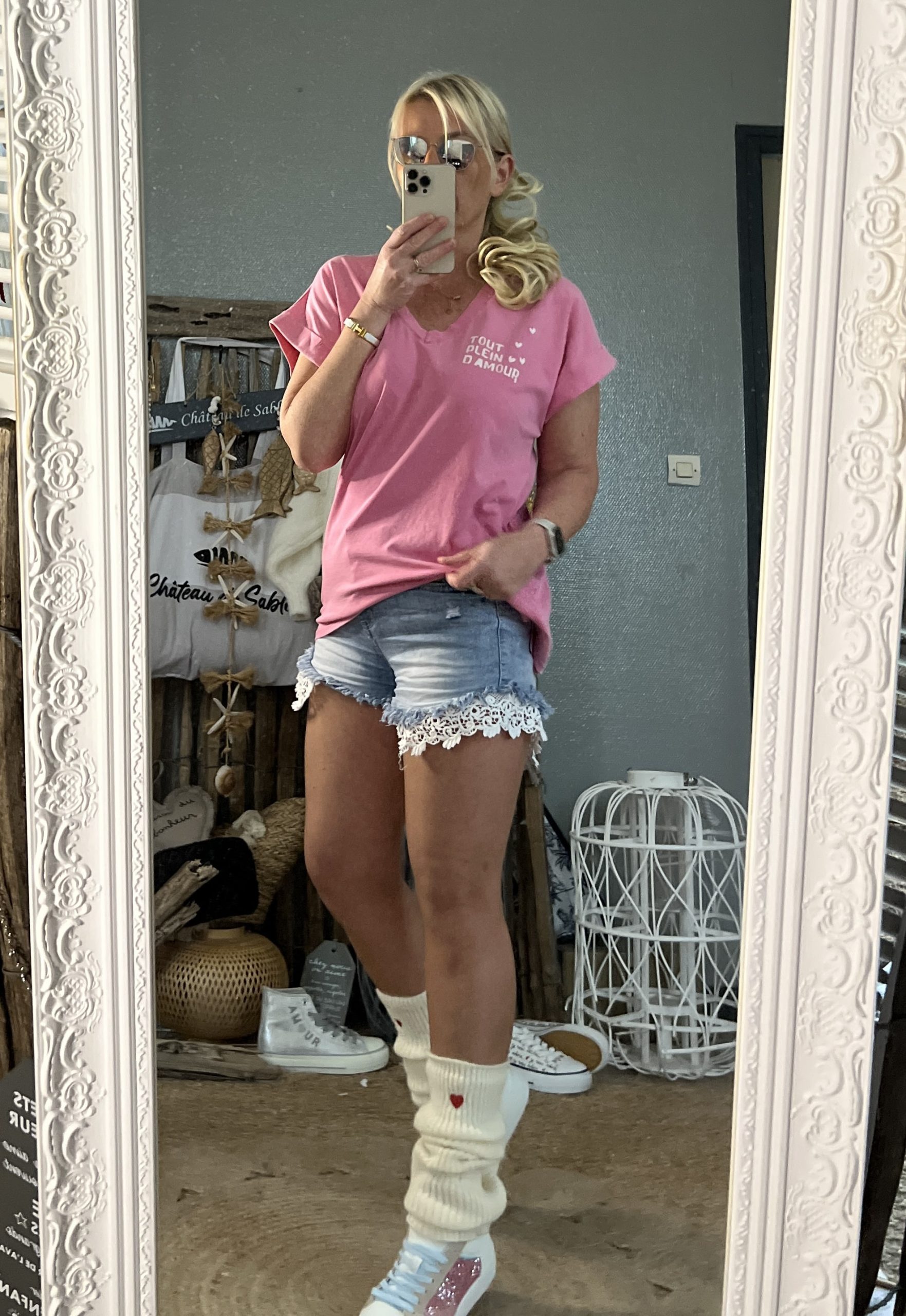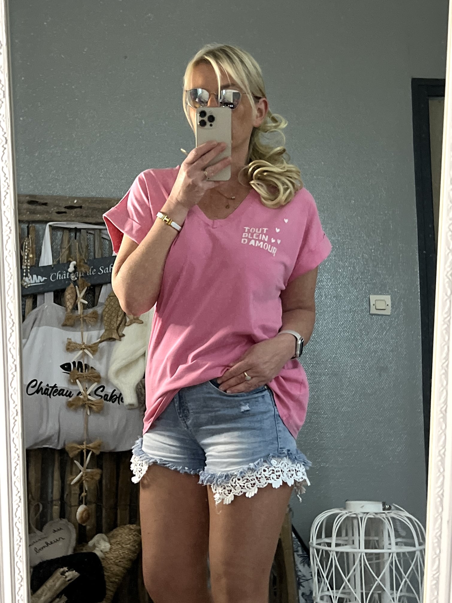 T-shirt rose délavé