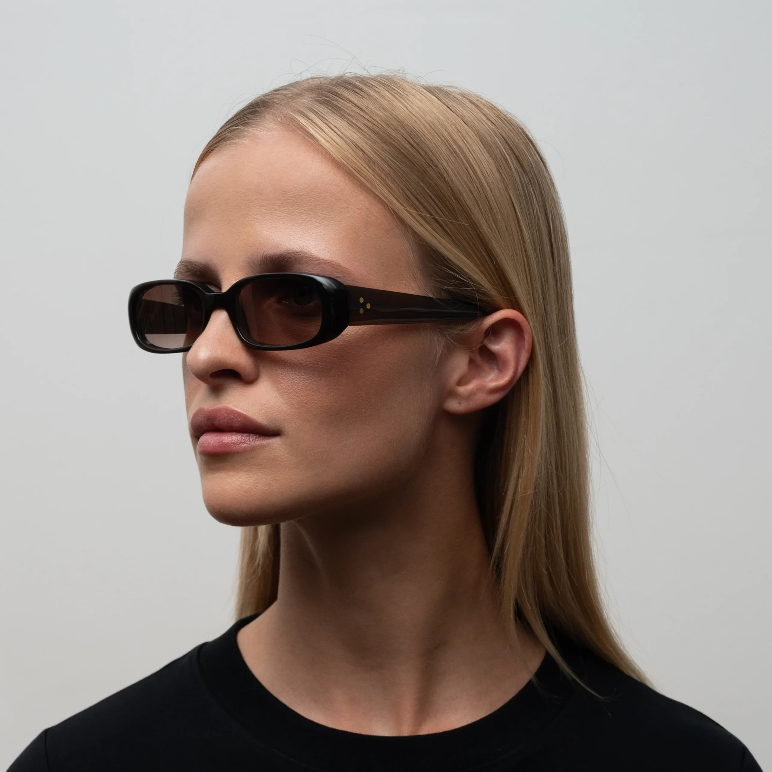 Monture en acétate premium inspirée des années 90 de forme rectangulaire équilibrée par des contours adoucis. Détails de rivets en forme d’étoile au niveau des branches. Dimensions : 53-18-140