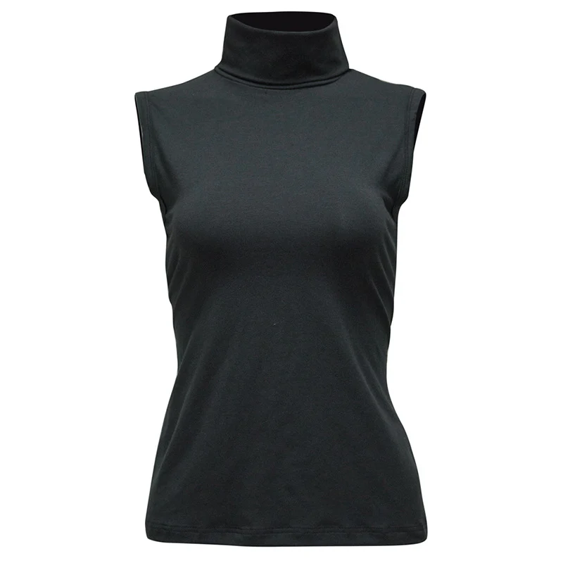 Tee-Shirt Col Roulé Femme Sans Manche Noir