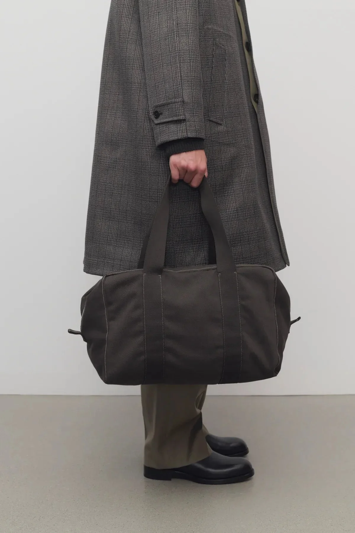 Spacieux sac de sport confectionné en sergé de coton robuste, doté de poignées tissées intégrées et d’une fermeture éclair sécurisée. Les surpiqûres contrastées soulignent sa construction soignée et renforcent sa durabilité. Un accessoire fonctionnel alliant qualité artisanale et design épuré.