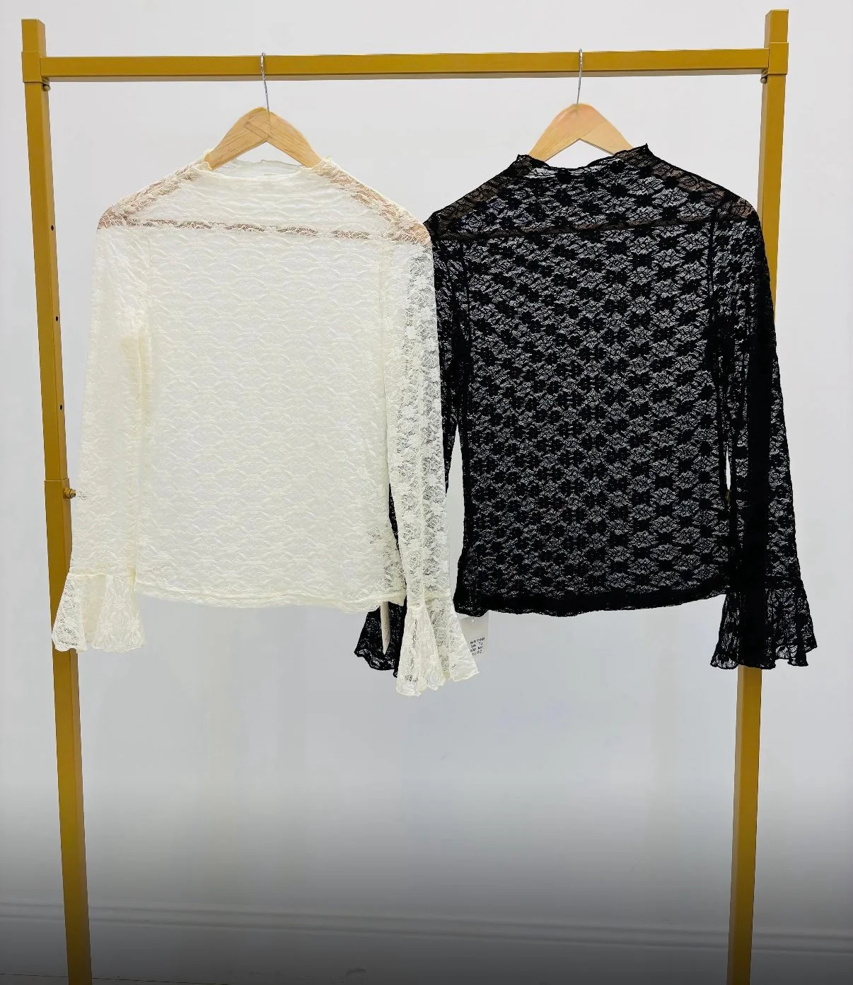 Magnifique top en dentelle avec manche mousquetaire Taille unique