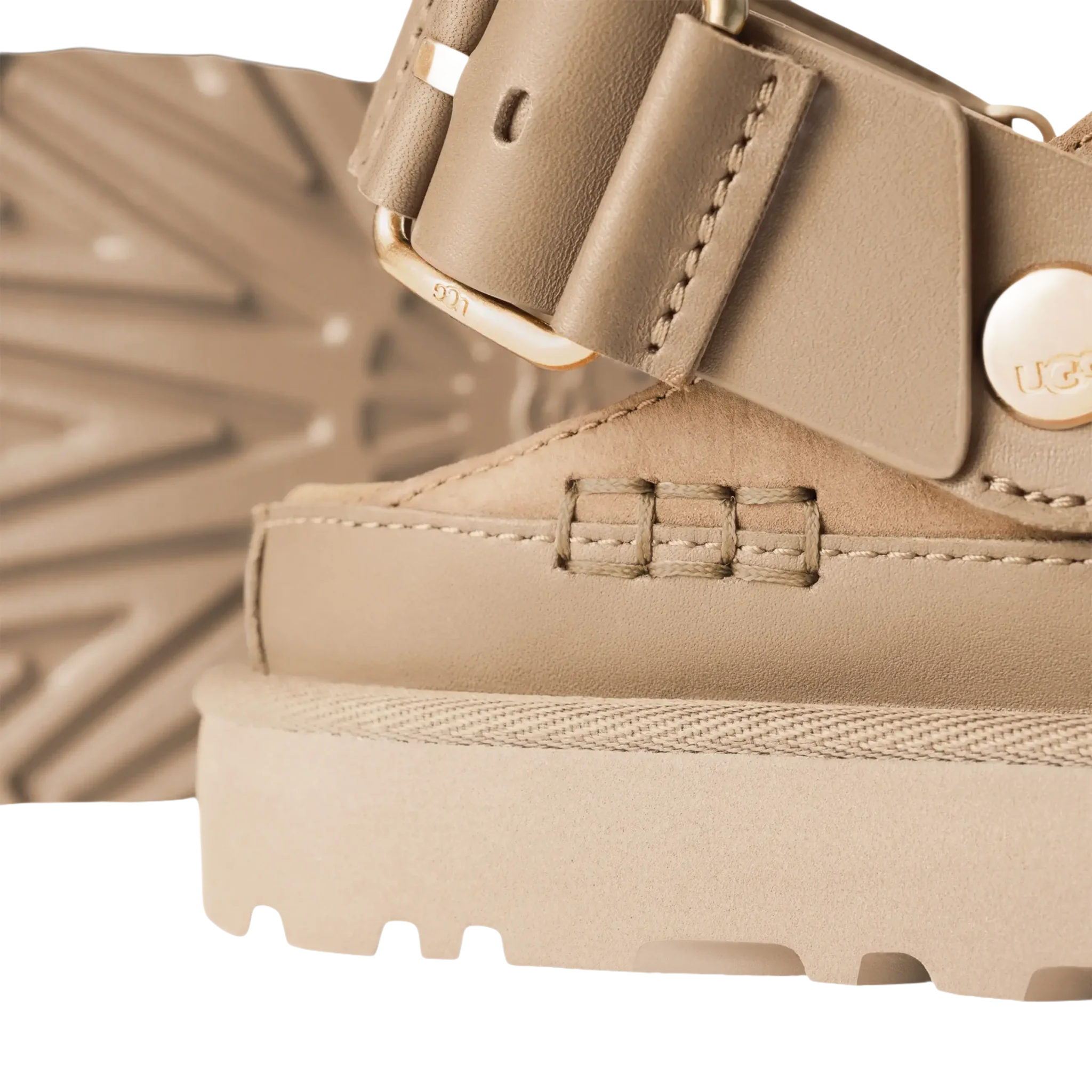 - Tige en nubuck, lanière en cuir avec logo UGG® en métal
