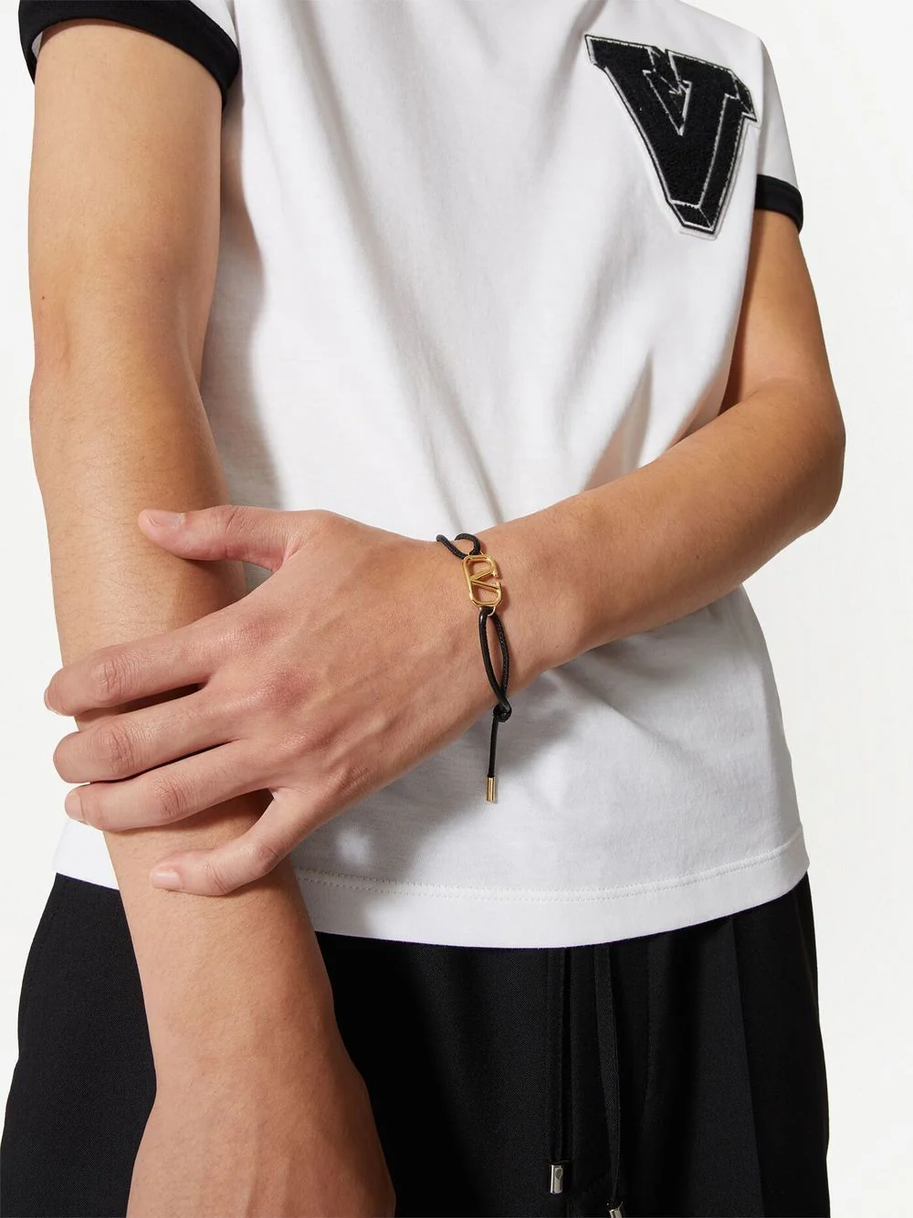 Valentino Garavani Bracelet noir à détail VLogo Signature en cuir