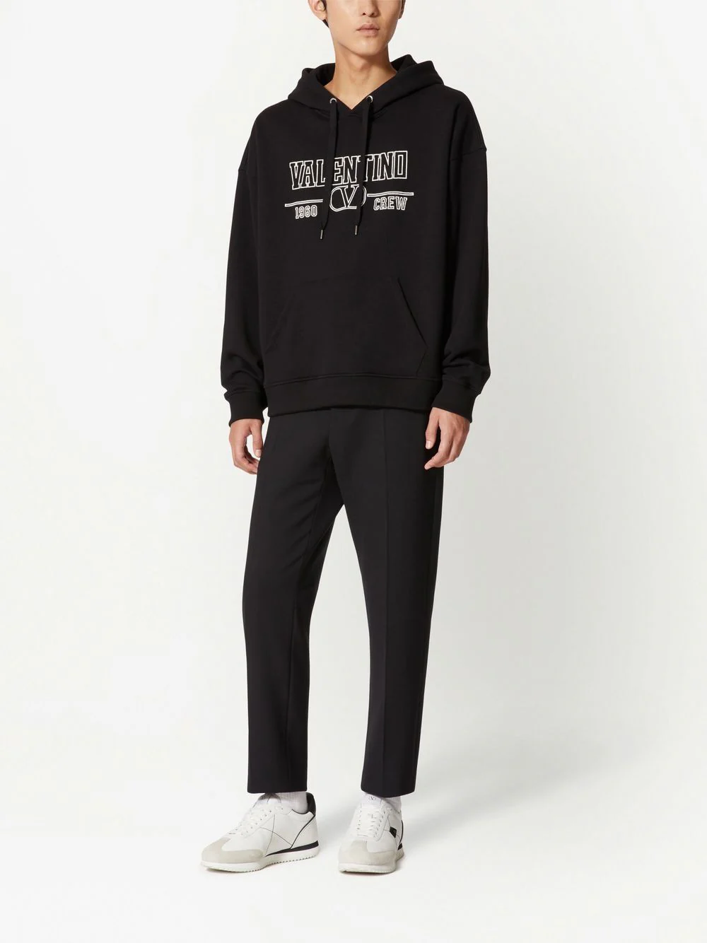 Valentino – Hoodie Black à logo imprimé noir et blanc