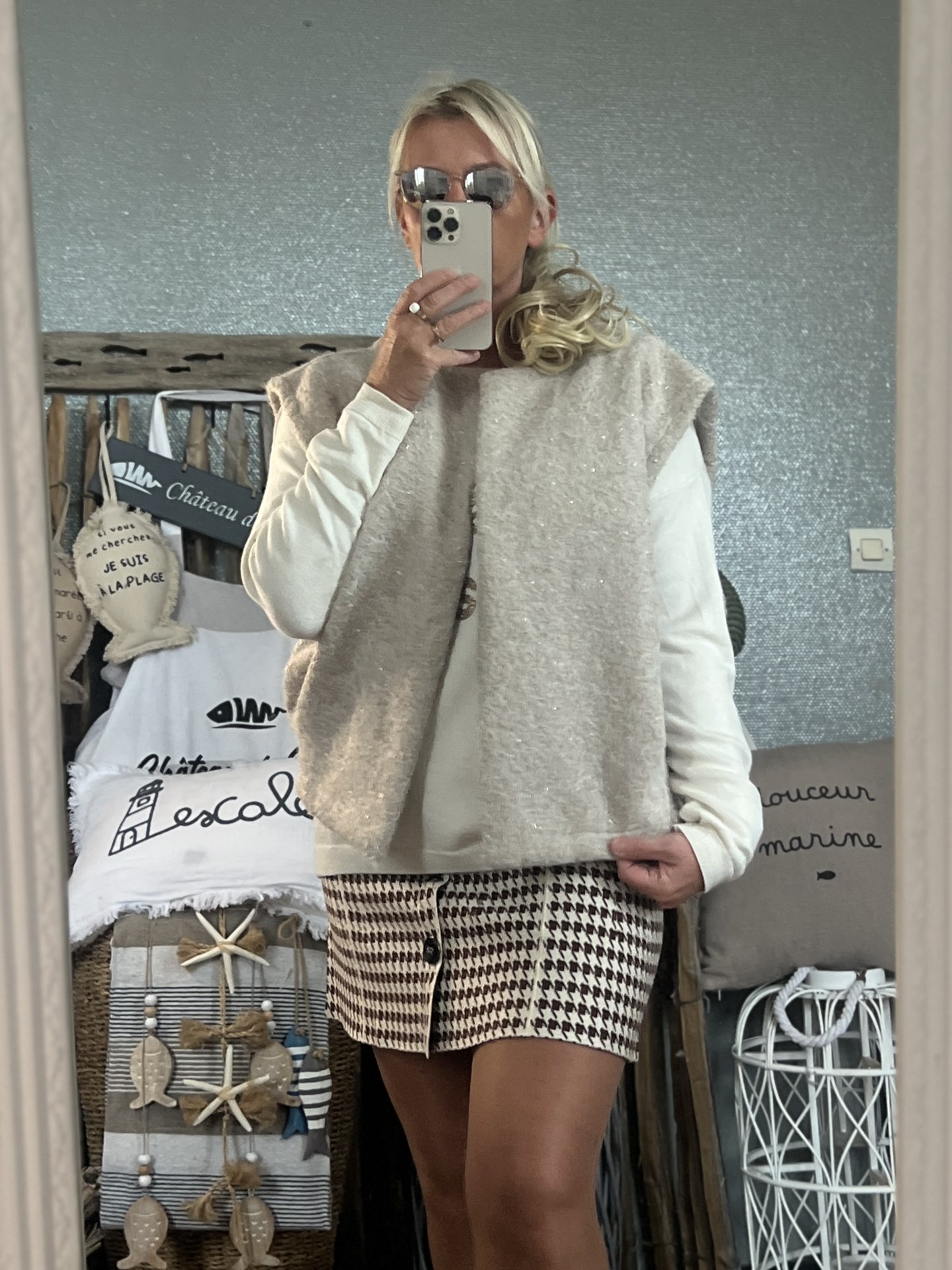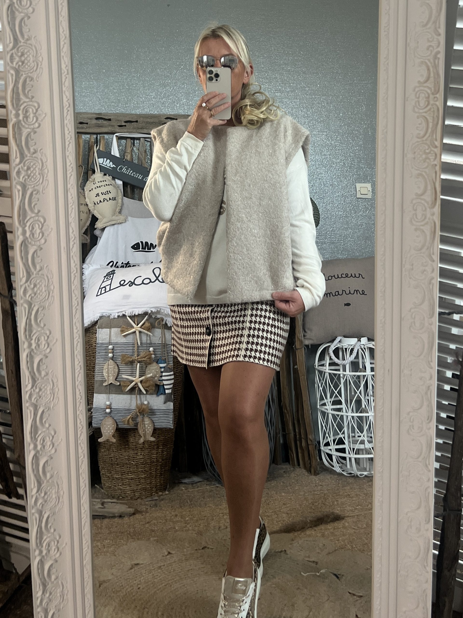 Veste sans manches pailleté beige