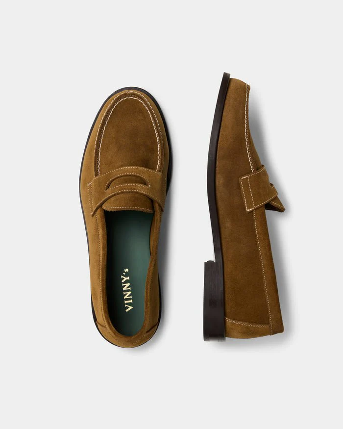 Le daim marron apporte une texture souple et élégante, idéale pour la saison estivale. La construction mocassin assure confort et flexibilité dès les premiers ports. Le modèle BOBBEE s’inscrit dans l’esthétique décontractée et soignée de Vinny’s, avec une fabrication artisanale au Portugal.